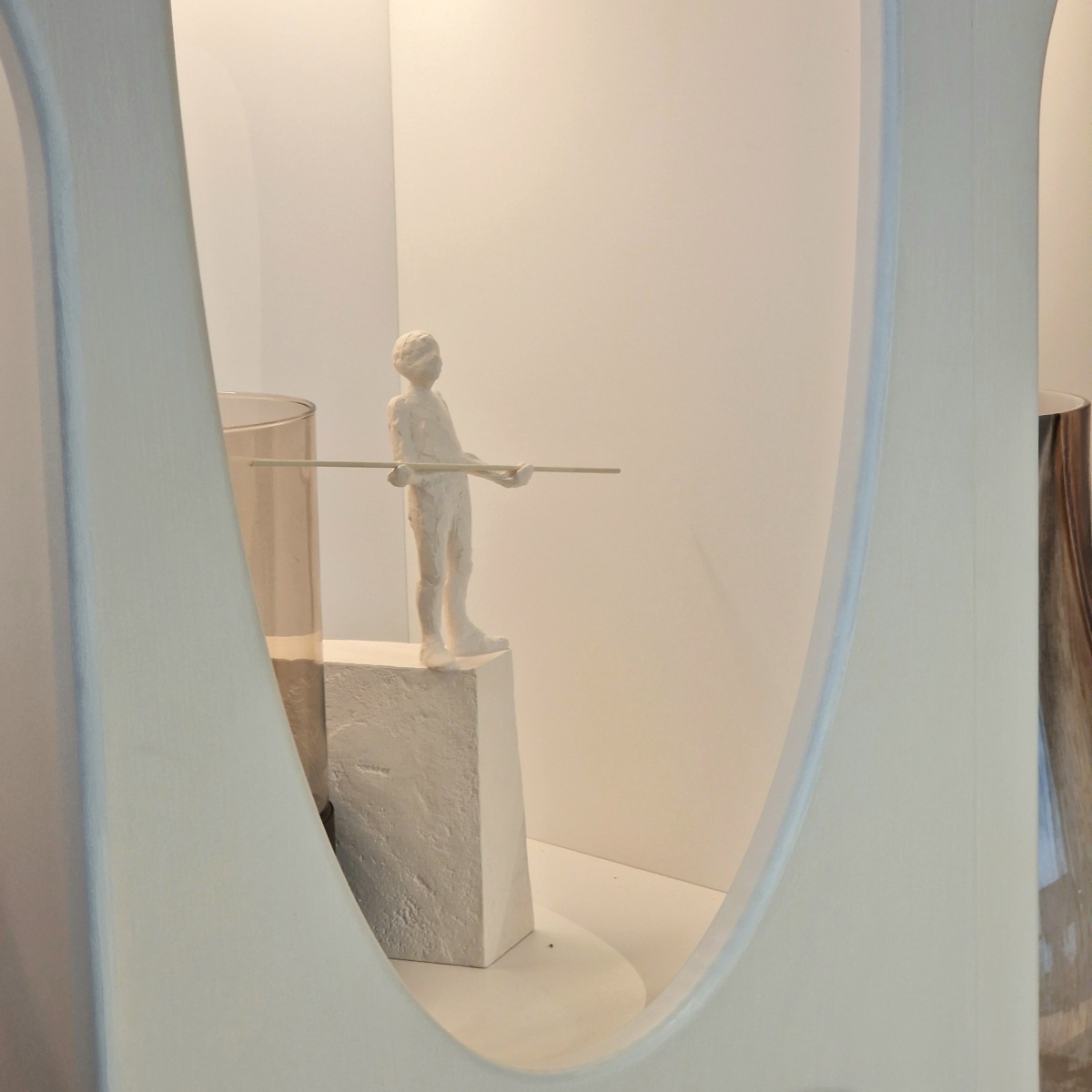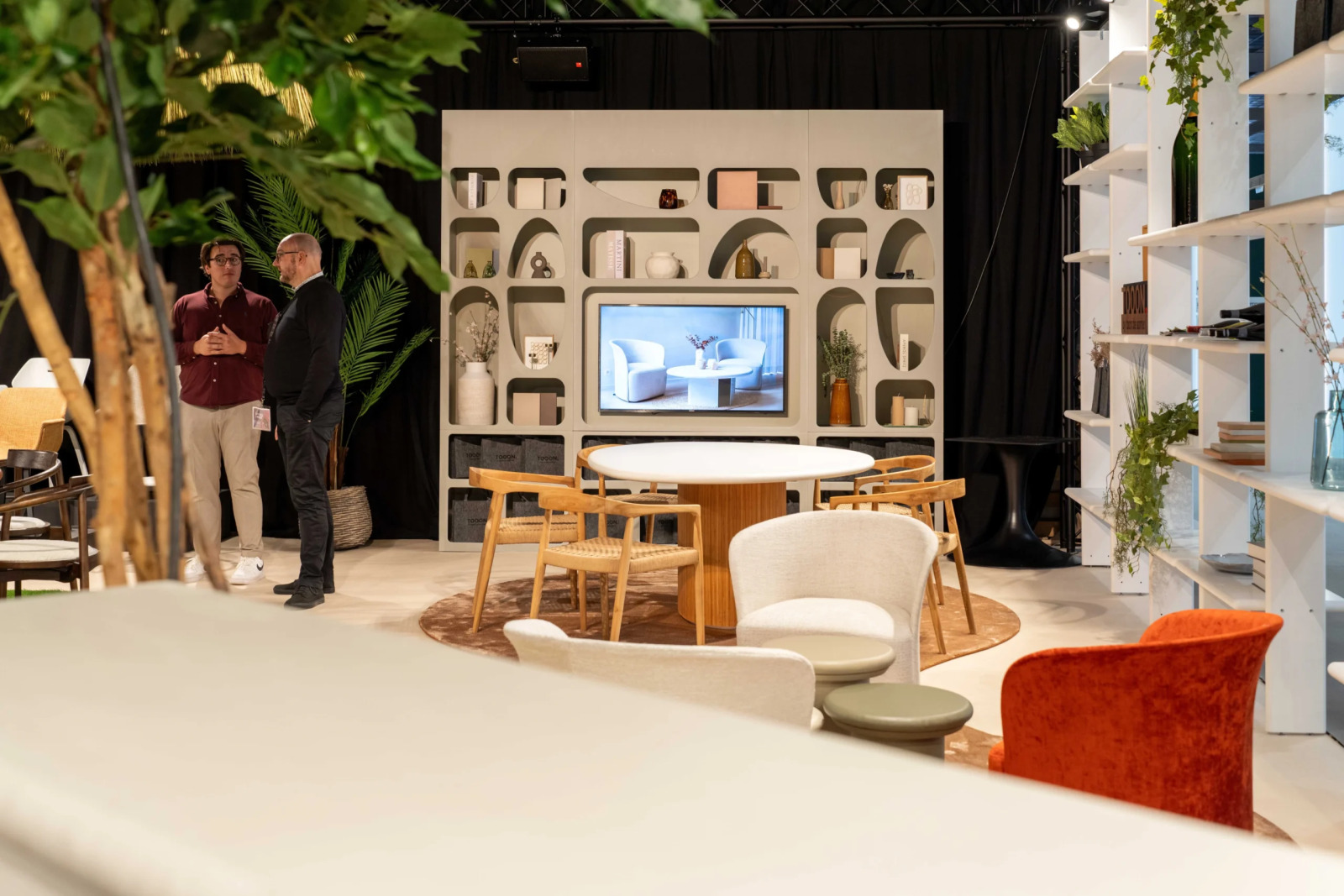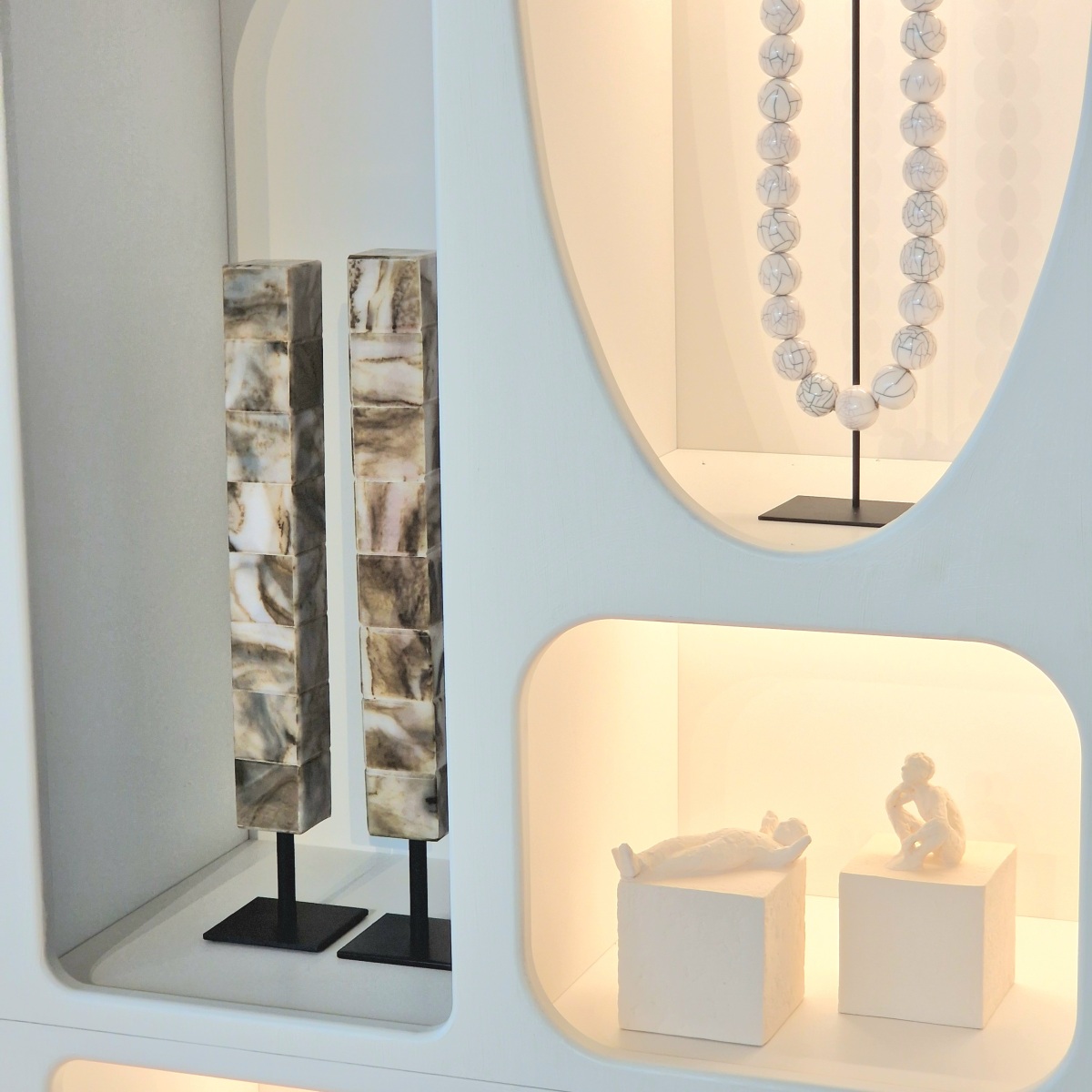 In onze showroom ontdek je een modelkast die ingebouwd is tussen twee muren. Daarom houden we zo van dit modulaire wandmeubel: dit leunt sterk aan bij maatwerk, waarbij onze schrijnwerkers voor de afwerking kunnen zorgen.