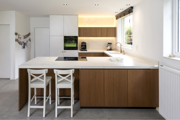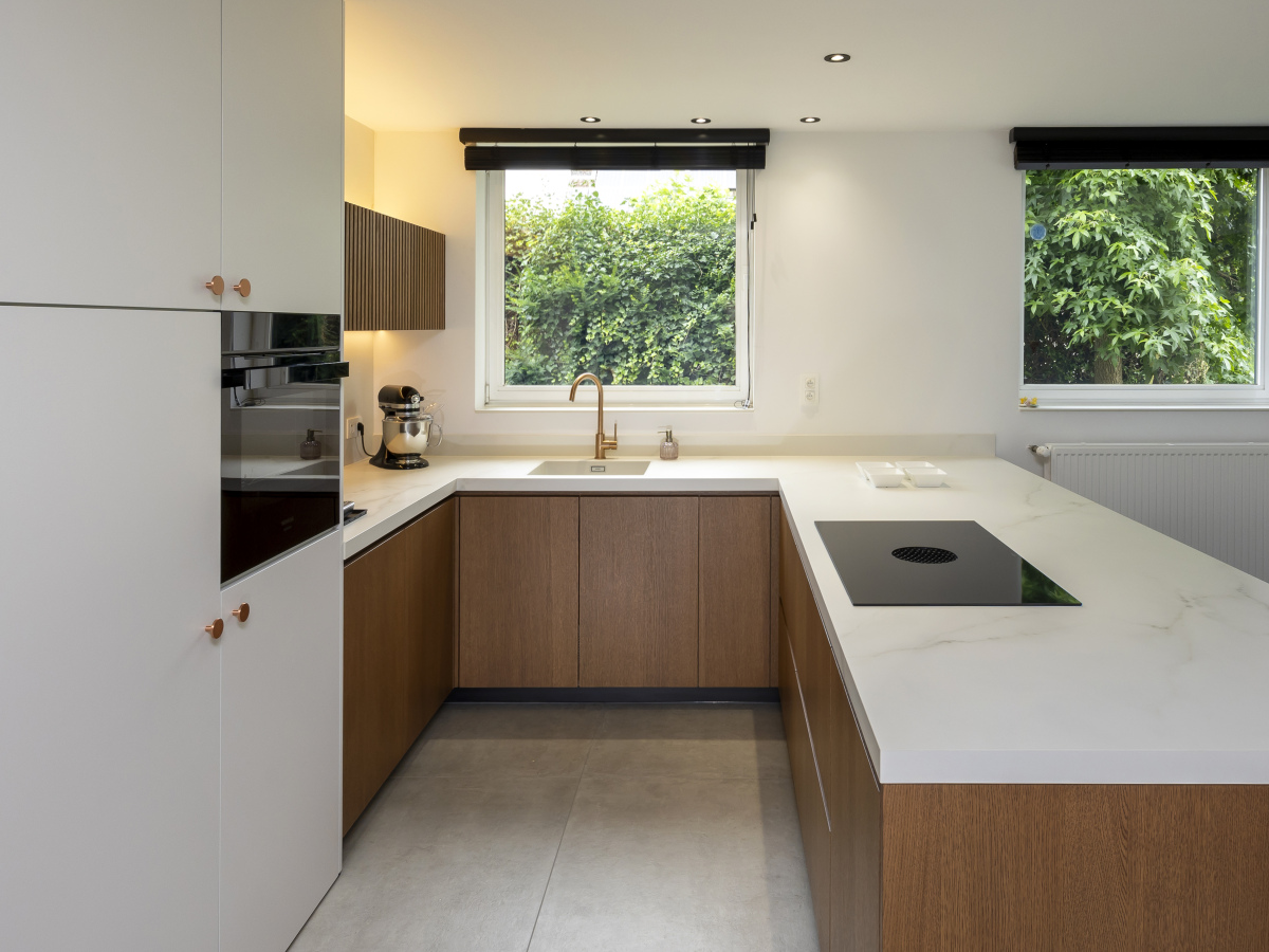 “In het echt is het nog mooier dan op foto!” Dat zeiden de vrienden van Lies en Randy toen ze hun nieuwe keuken voor het eerst zagen. Ze mogen dan ook terecht fier zijn. Toen ze hun huis kochten, besloten Lies en Randy het in stapjes te renoveren. Nadat vorig jaar de badkamer volledig vernieuwd werd, kreeg dit jaar de benedenverdieping een make-over. Een nieuwe maatkeuken stond dus bovenaan de planning.